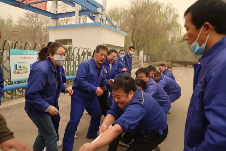 開(kāi)幕式結(jié)束后,普安、普華拔河友誼賽火熱開(kāi)賽?v使今天黃沙漫漫,陰陰沉沉,但雙方選手的熱情沒(méi)有受到絲毫影響。賽場(chǎng)上參賽隊(duì)員奮勇拼搏,賽場(chǎng)邊圍觀觀眾搖旗吶喊,氣氛好不熱烈!